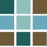 A 3x3 grid of colored squares: teal, light blue, brown, and aqua, arranged in alternating pattern.